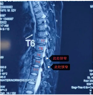 患者劉先生(化名)多年前就被確診為強直性脊柱炎,雖有間歇性治療,但胸椎、頸椎、腰椎等多節(jié)段都有椎管狹窄,尤其是胸9—10和10—11兩個節(jié)段,骨化的黃韌帶和脊髓的硬膜幾乎完全粘連在一起,脊髓壓迫嚴重。受此影響,劉先生兩條腿沉重、走路沒有力量,需要人攙扶著才能走,且大小便也控制得不好,才52歲的他,生活已完全不能自理。