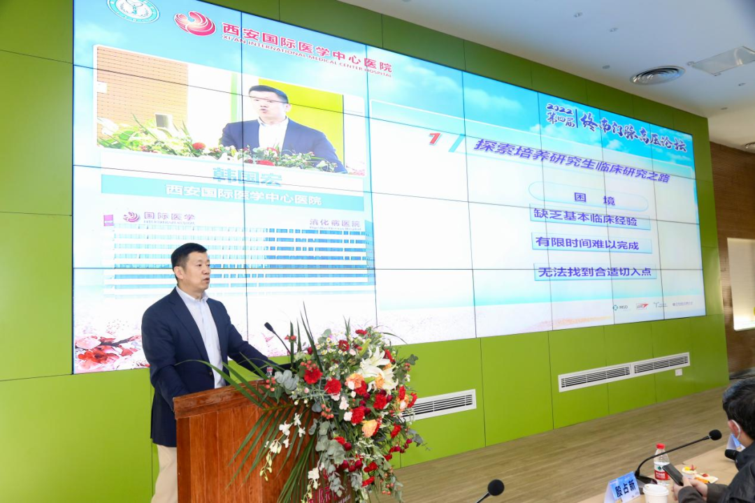 12月16日——18日,由陜西保健學(xué)會(huì)主辦,西安國(guó)際醫(yī)學(xué)中心醫(yī)院承辦的“2022第四屆終南門脈高壓論壇”在我院舉行。大會(huì)采取線上 線下相結(jié)合的方式,全程網(wǎng)絡(luò)直播,線上累計(jì)觀看人次達(dá)39903人次,邀請(qǐng)了國(guó)內(nèi)消化、介入、外科、肝病等領(lǐng)域?qū)<夜沧h行業(yè)熱點(diǎn)與未來發(fā)展。會(huì)議由西安國(guó)際醫(yī)學(xué)中心醫(yī)院消化病醫(yī)院執(zhí)行院長(zhǎng)韓國(guó)宏主持。