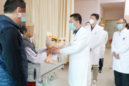 2023年1月31日,西安國際醫(yī)學(xué)中心醫(yī)院消化外科三病區(qū),劉延彤副院長、李國才主任、主管醫(yī)生許澤宇以及科室醫(yī)護團隊,共同為當(dāng)日出院的李虹(化名)送上鮮花,向他們送上最誠摯的祝福。