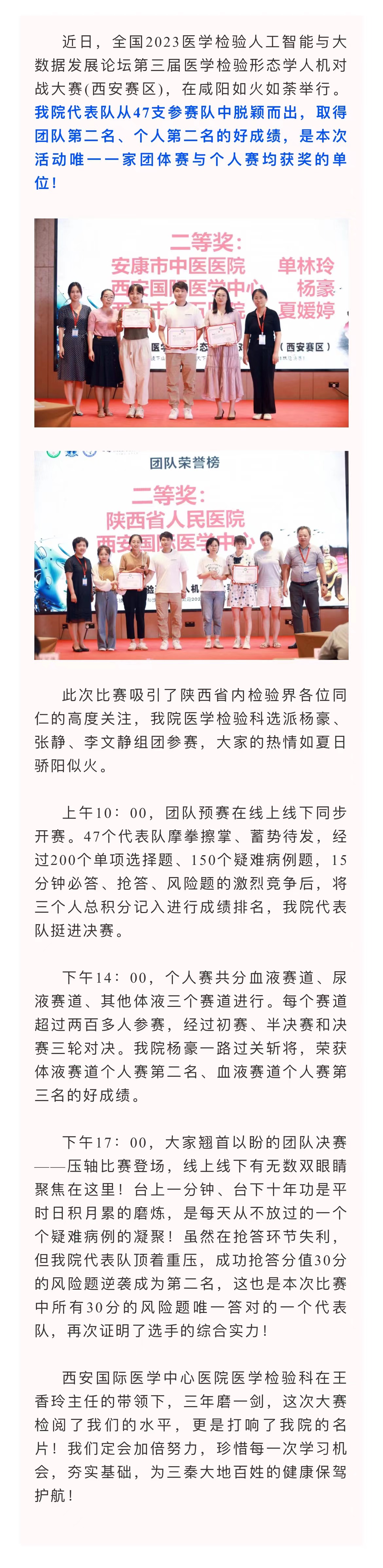 唯一!團(tuán)隊、個人均獲全國第三屆醫(yī)學(xué)檢驗形態(tài)學(xué)人機(jī)對戰(zhàn)大賽(西安賽區(qū))第二名