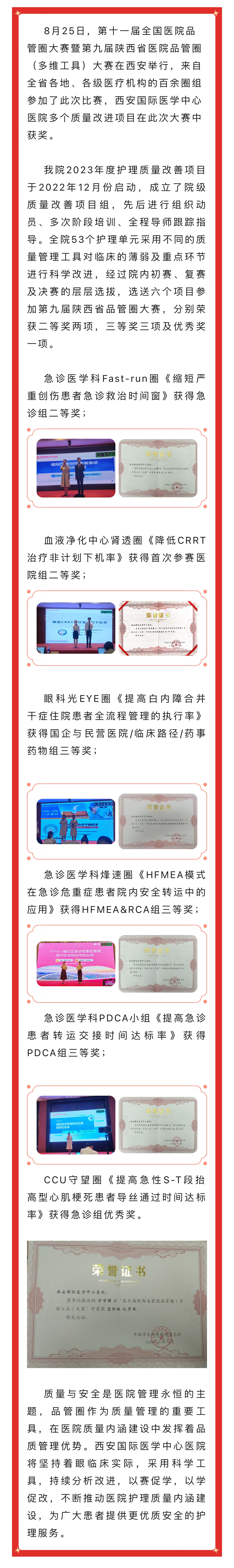 再傳捷報(bào)!我院在第九屆陜西省品管圈大賽中斬獲多個(gè)獎(jiǎng)項(xiàng)