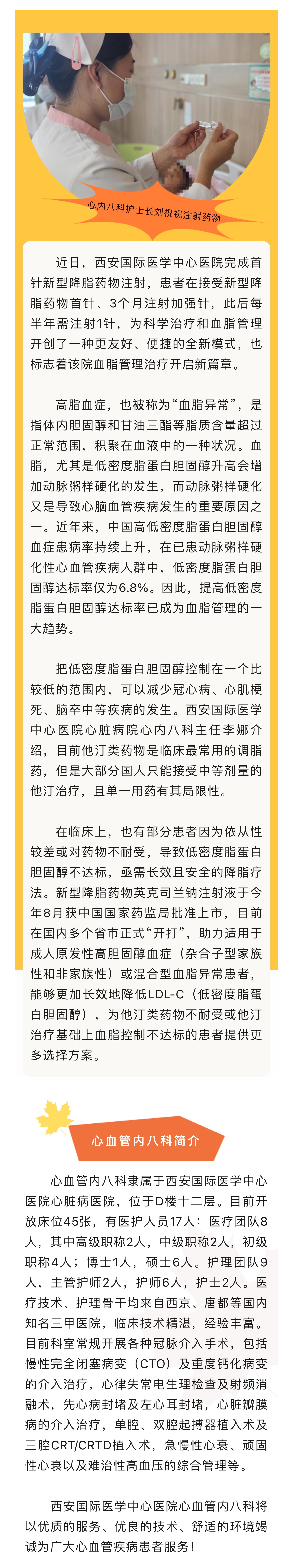 一年2針降脂!西安國(guó)際醫(yī)學(xué)中心醫(yī)院完成首針新型降脂藥物注射