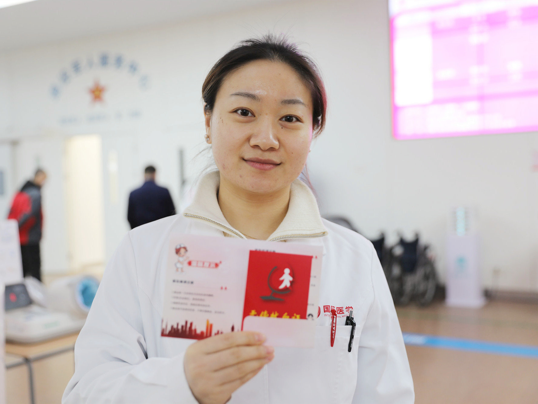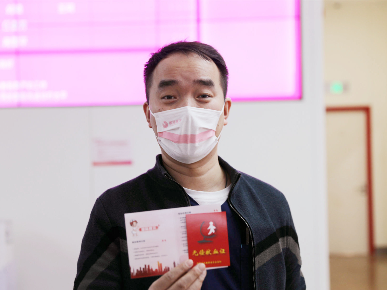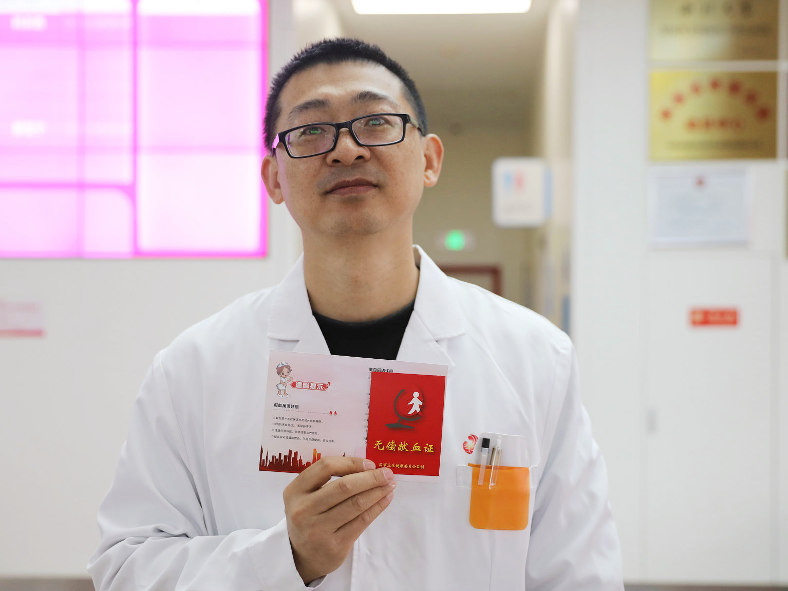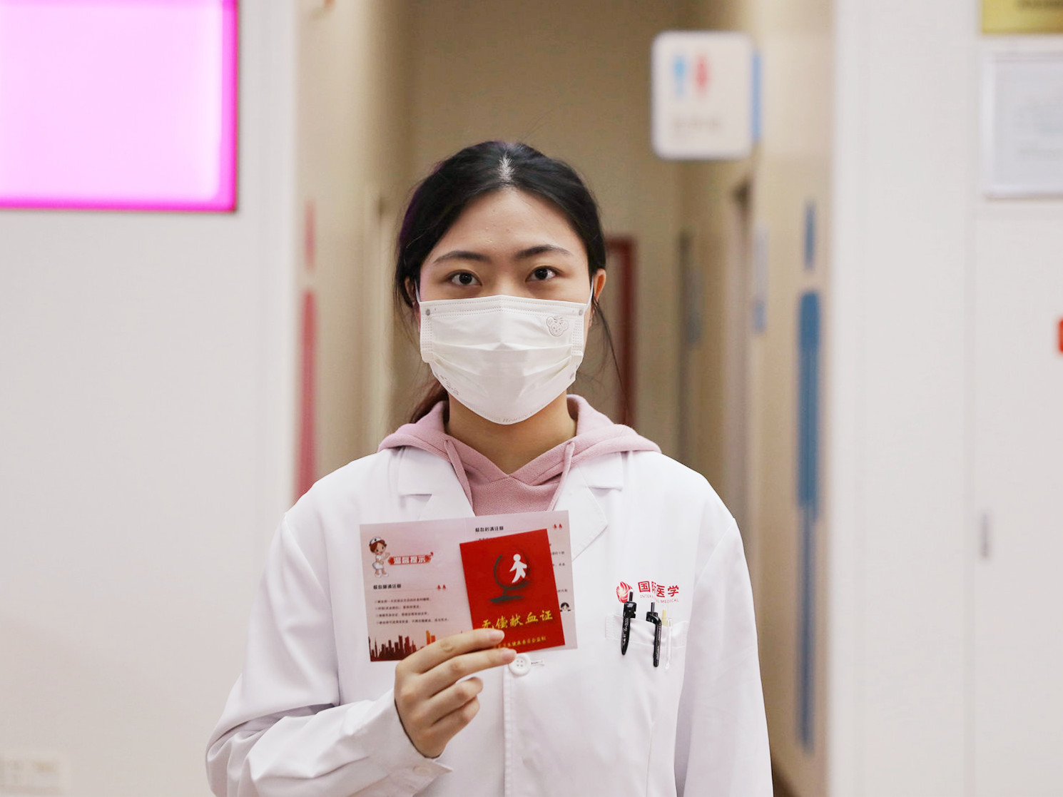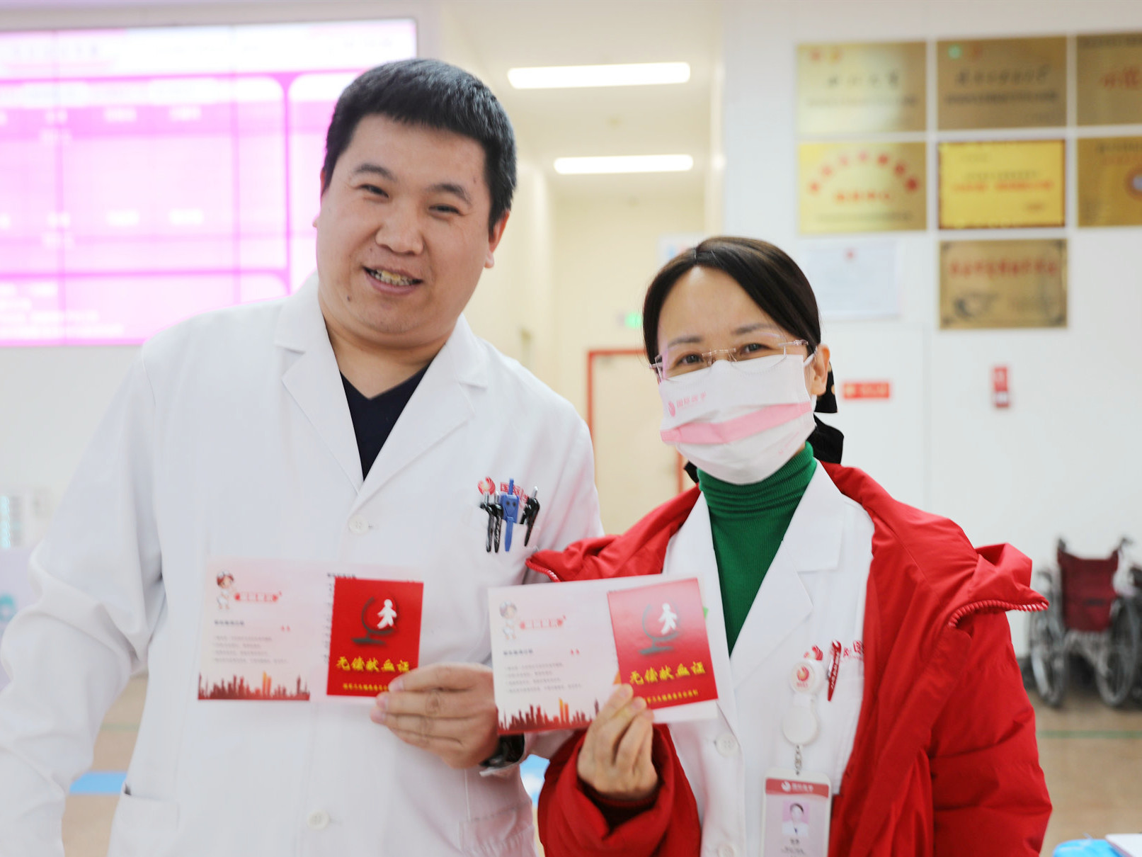 西安市中心血站現(xiàn)場為踴躍參與無償獻血活動的醫(yī)務(wù)人員、志愿群眾發(fā)放無償獻血證,感謝他們?yōu)橥炀壬龀龅呢暙I,呼吁更多人加入無償獻血者隊伍。