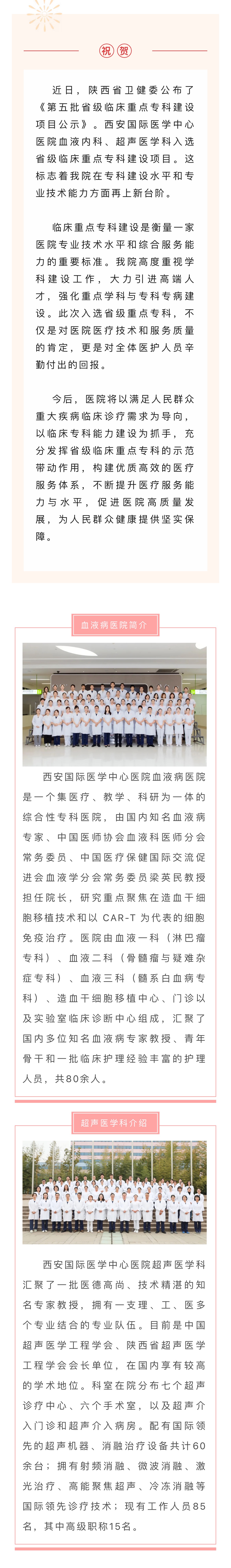我院血液內(nèi)科、超聲醫(yī)學(xué)科入選省級臨床重點??平ㄔO(shè)項目