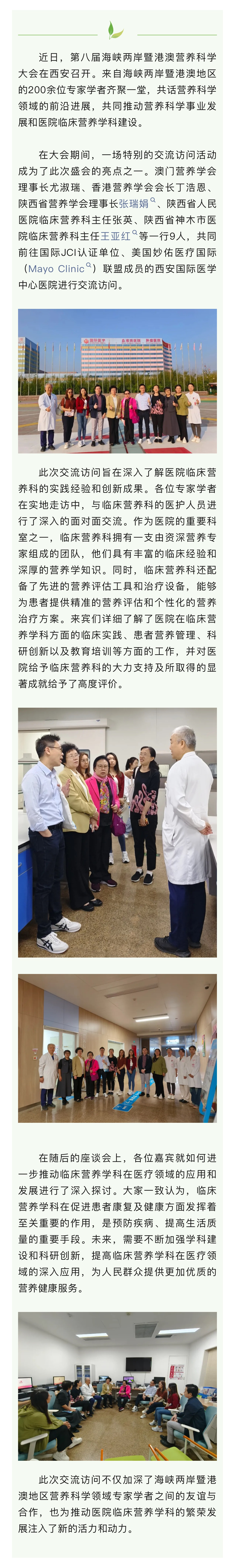 海峽兩岸暨港澳營養(yǎng)科學大會聚焦醫(yī)院臨床營養(yǎng)學科建設,西安國際醫(yī)學中心醫(yī)院成亮點