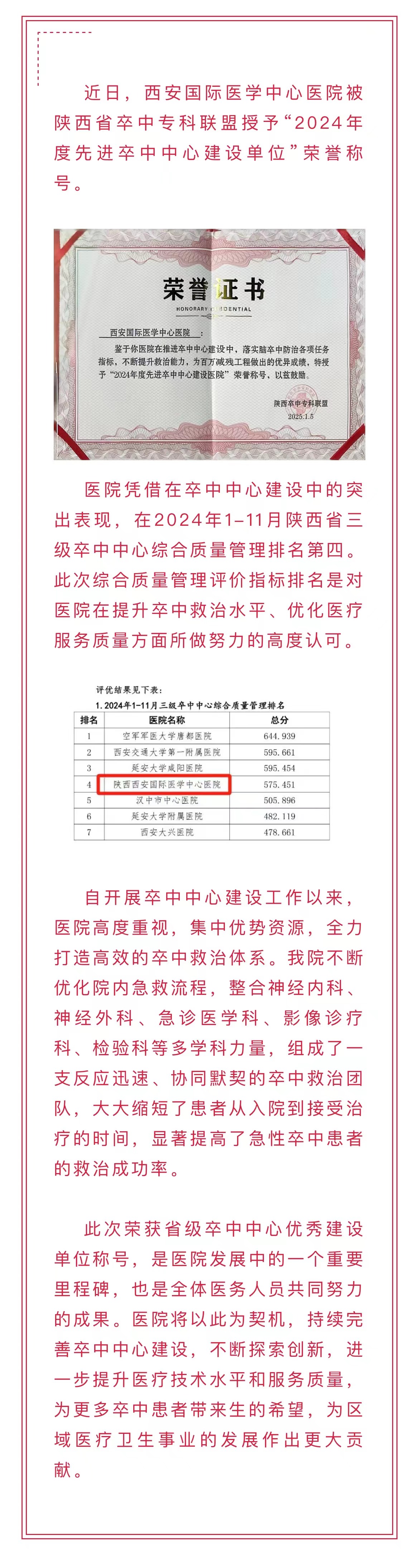 祝賀!我院獲評(píng)先進(jìn)卒中中心建設(shè)單位