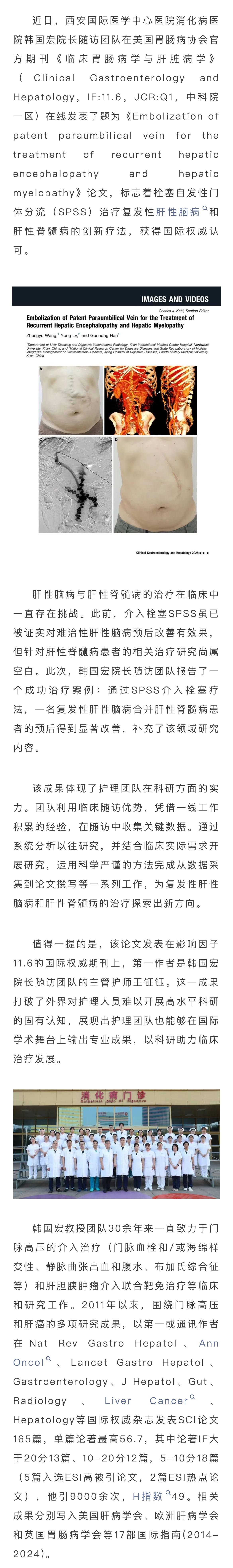 我院護(hù)理團(tuán)隊(duì)臨床成果登榜國(guó)際肝病權(quán)威期刊,影響因子11.6