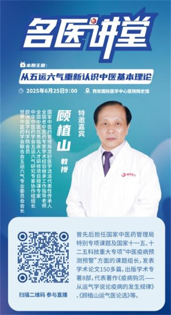 6月25日上午,由西安國際醫(yī)學(xué)中心醫(yī)院主辦的"名醫(yī)講堂"系列學(xué)術(shù)活動(dòng)在院史館舉行。本次講座邀請(qǐng)到國家中醫(yī)藥管理局龍砂醫(yī)學(xué)流派代表性傳承人顧植山教授,作《從五運(yùn)六氣重新認(rèn)識(shí)中醫(yī)基本理論》的專題報(bào)告。西安國際醫(yī)學(xué)中心醫(yī)院尹強(qiáng)院長(zhǎng)、中醫(yī)醫(yī)院趙曉平院長(zhǎng)、中醫(yī)二科卓鷹主任及科室醫(yī)護(hù)人員、百余名中醫(yī)從業(yè)者及愛好者參會(huì)學(xué)習(xí),重新認(rèn)識(shí)博大精深的中醫(yī)理論。