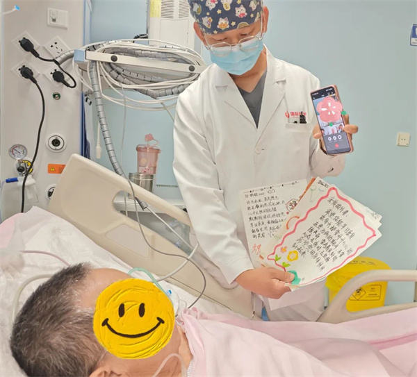 深知家屬的牽掛,護(hù)士們會細(xì)心記錄患者的狀態(tài),向家屬詳細(xì)轉(zhuǎn)達(dá)。她們鼓勵家屬錄制語音或視頻,將家人的聲音和面容帶到床邊。有時,一句來自孫輩的“爺爺加油”,一段愛人熟悉的叮嚀,就能讓患者樹立起戰(zhàn)勝病魔的信心。