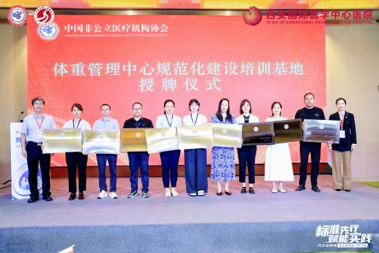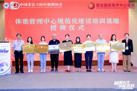 為破解這一困局,中國(guó)非公立醫(yī)療機(jī)構(gòu)協(xié)會(huì)積極推進(jìn)標(biāo)準(zhǔn)化與協(xié)同化建設(shè),經(jīng)嚴(yán)格評(píng)審,對(duì)40家機(jī)構(gòu)授予“體重管理中心規(guī)范化建設(shè)培訓(xùn)基地”稱號(hào),并為到場(chǎng)的35家機(jī)構(gòu)代表舉行授牌儀式。