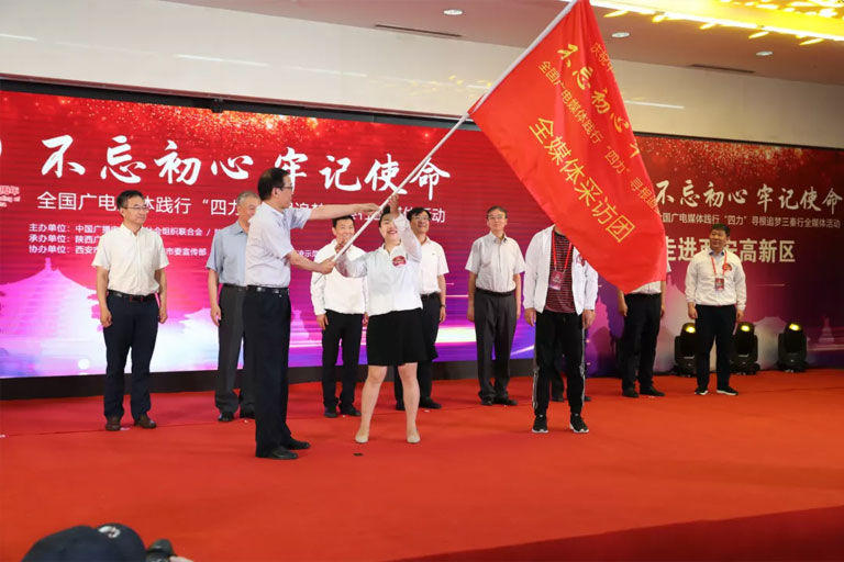 不忘初心 牢記使命——慶祝新中國成立七十周年全國廣電媒體踐行‘四力’尋根追夢三秦行”全媒體活動由中國廣播電影電視社會組織聯(lián)合會、陜西省委宣傳部聯(lián)合主辦并于當(dāng)日上午在西安正式啟動。