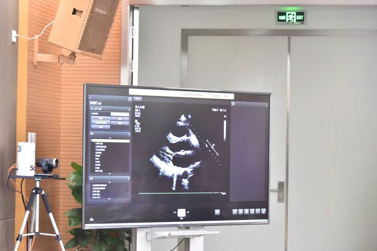 5G遠程會診現(xiàn)場,西安國際醫(yī)學中心心內科張衛(wèi)澤主任、超聲科陳姍姍主任打開4K高清顯示器,屏幕上立刻出現(xiàn)了商洛國際醫(yī)學中心的B超畫面,一位醫(yī)生正在為患者做心臟B超,隨著探頭的轉動,超聲機器上的畫面清晰可見,雖然兩家醫(yī)院相距一百多公里,但畫面流暢,沒一點拖沓。